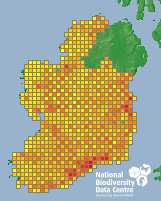 Distribution of the number of records recorded within each 10km grid square (ITM).Marine Map - 50km