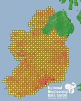 Distribution of the number of records recorded within each 10km grid square (ITM).Marine Map - 50km