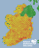 Distribution of the number of records recorded within each 10km grid square (ITM).Marine Map - 50km