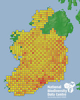 Distribution of the number of records recorded within each 10km grid square (ITM).Marine Map - 50km