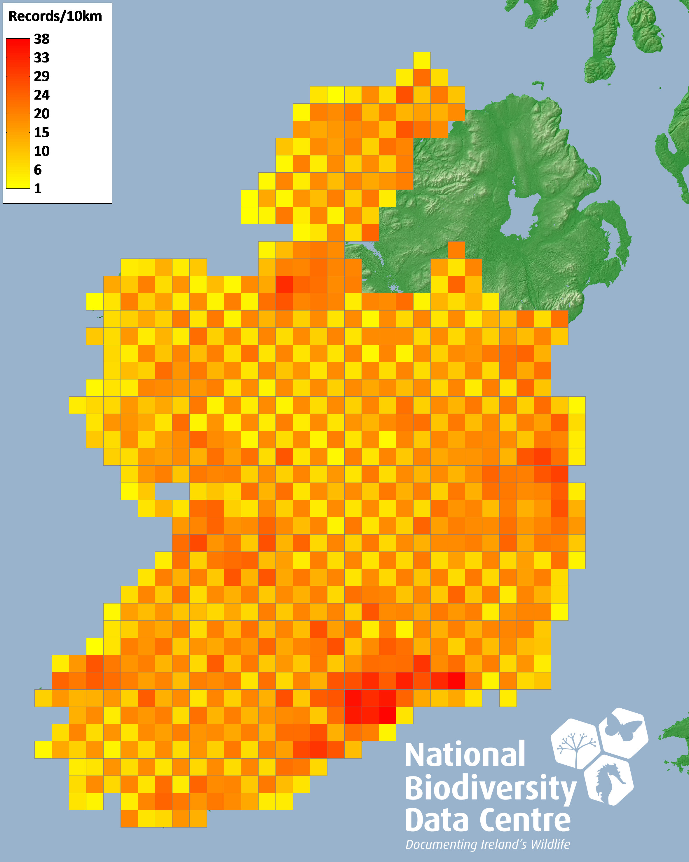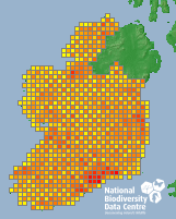 Distribution of the number of records recorded within each 10km grid square (ITM).Marine Map - 50km