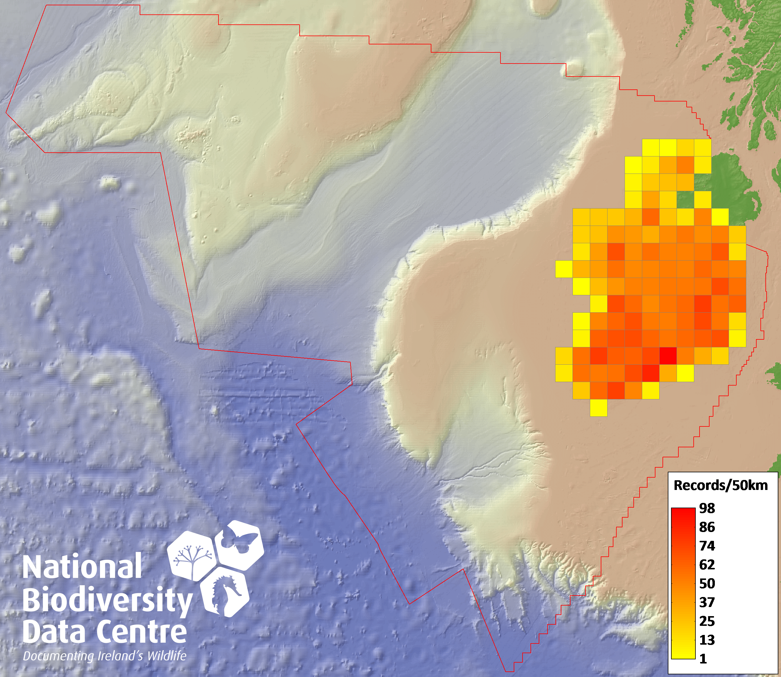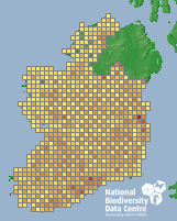 Distribution of the number of records recorded within each 10km grid square (ITM).Marine Map - 50km