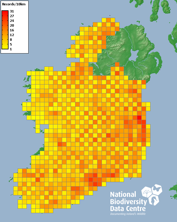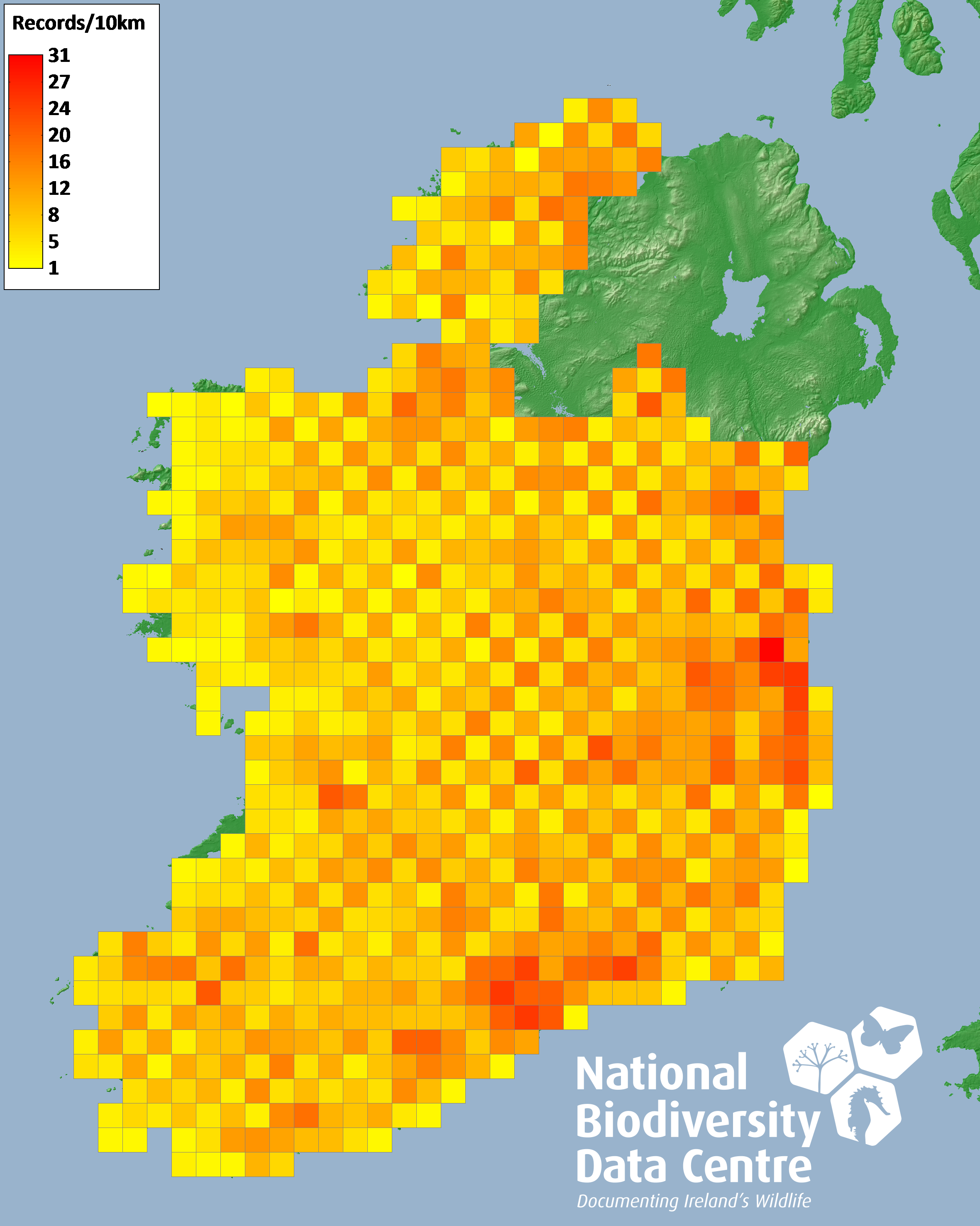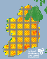Distribution of the number of records recorded within each 10km grid square (ITM).Marine Map - 50km