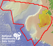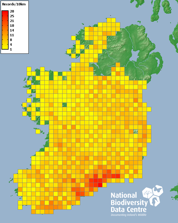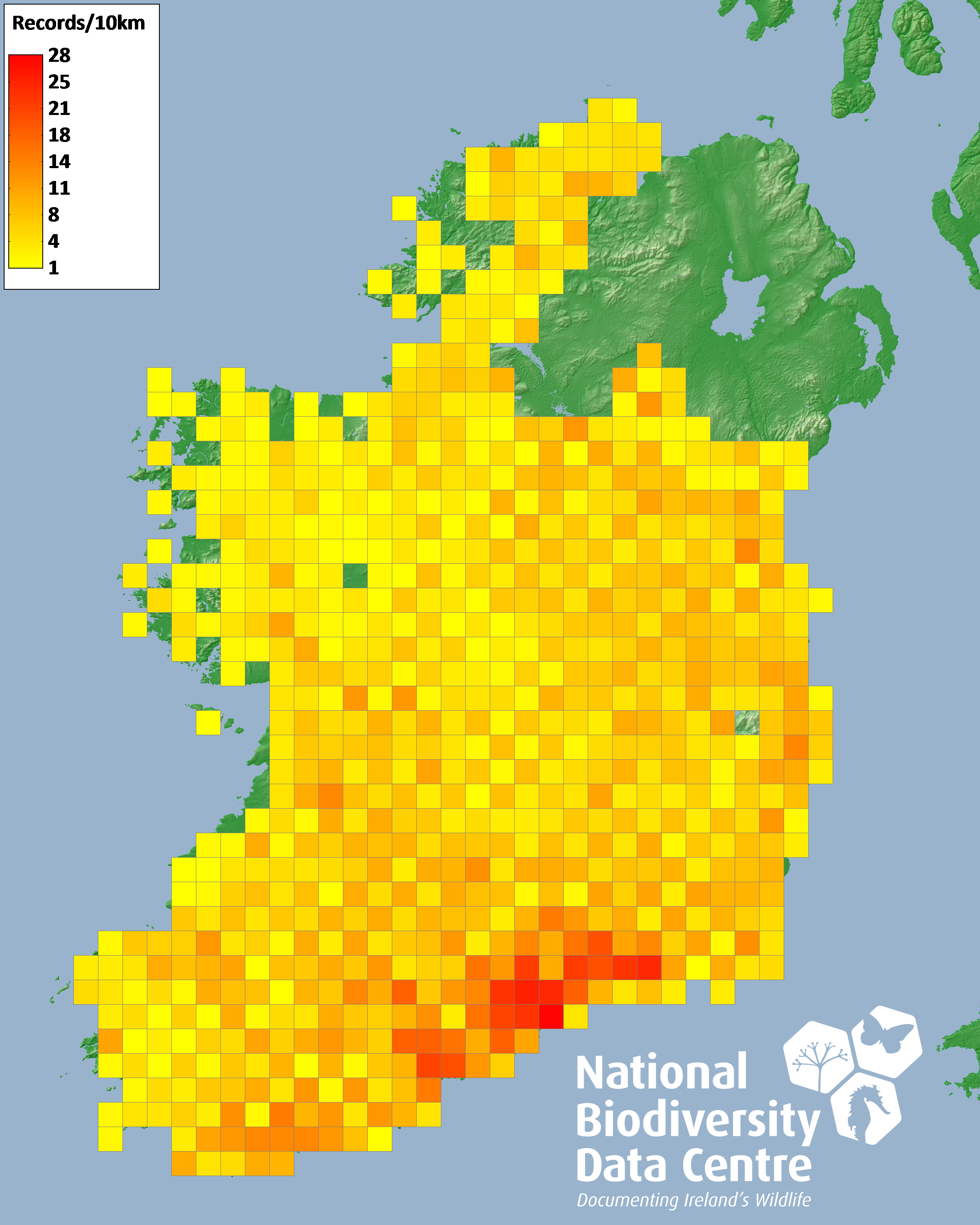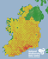 Distribution of the number of records recorded within each 10km grid square (ITM).Marine Map - 50km