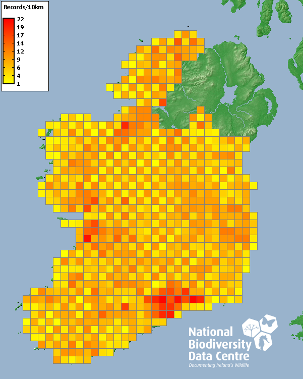 Distribution of the number of records recorded within each 10km grid square (ITM).Marine Map - 50km