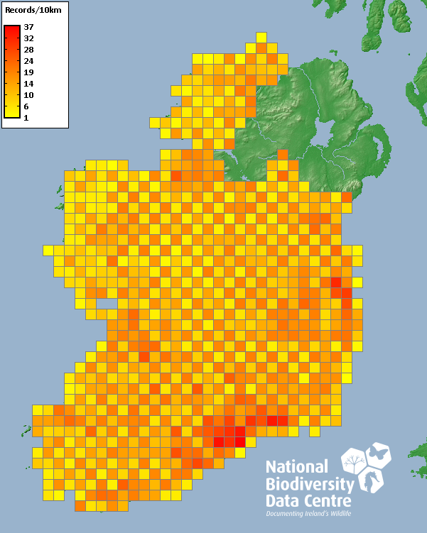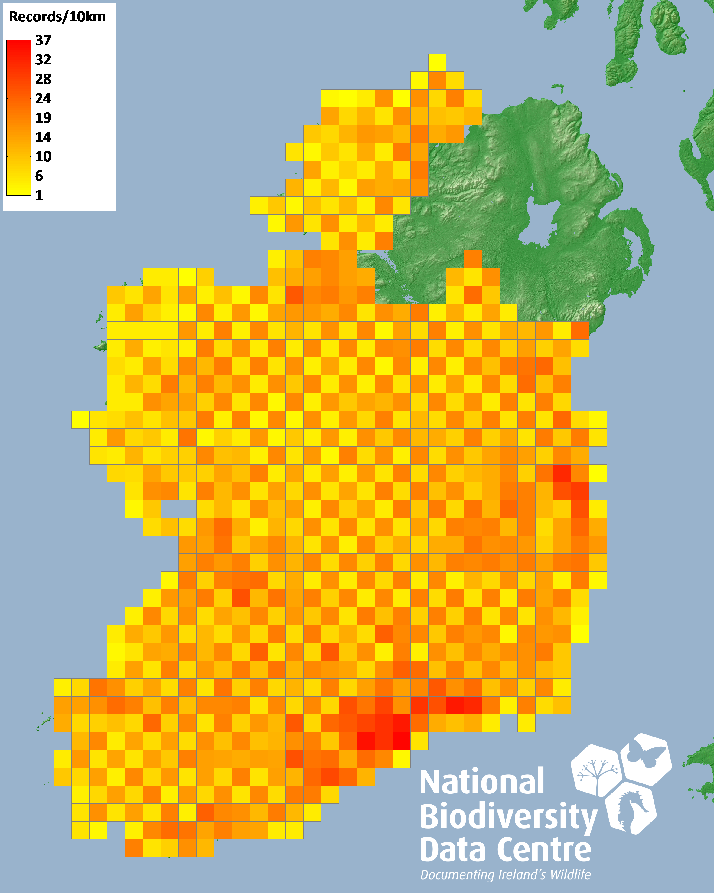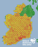 Distribution of the number of records recorded within each 10km grid square (ITM).Marine Map - 50km