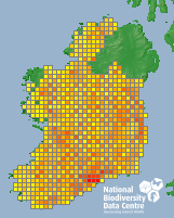 Distribution of the number of records recorded within each 10km grid square (ITM).Marine Map - 50km