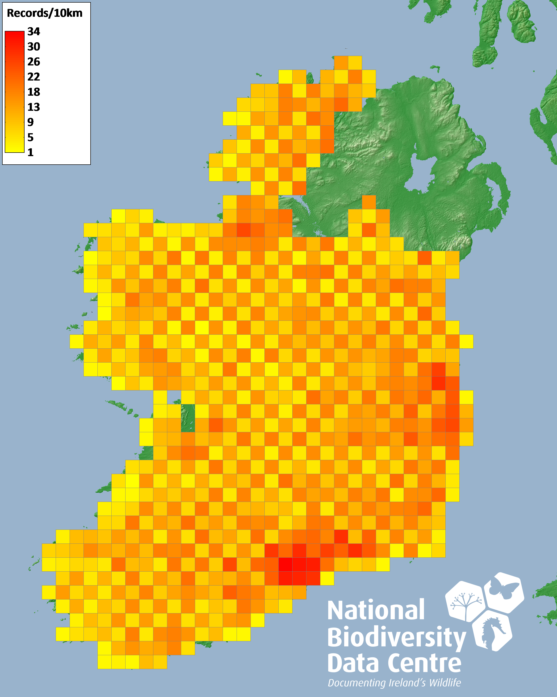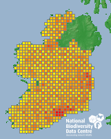 Distribution of the number of records recorded within each 10km grid square (ITM).Marine Map - 50km