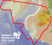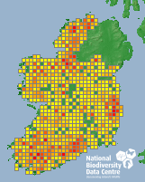 Distribution of the number of records recorded within each 10km grid square (ITM).Marine Map - 50km