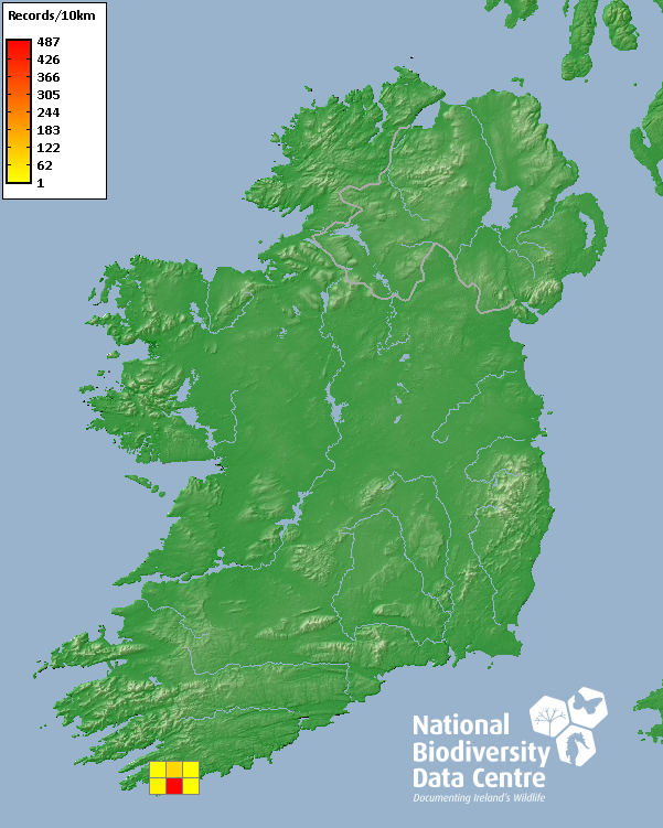 Distribution of the number of records within each 10km grid square (ITM).Marine Map - 50Km