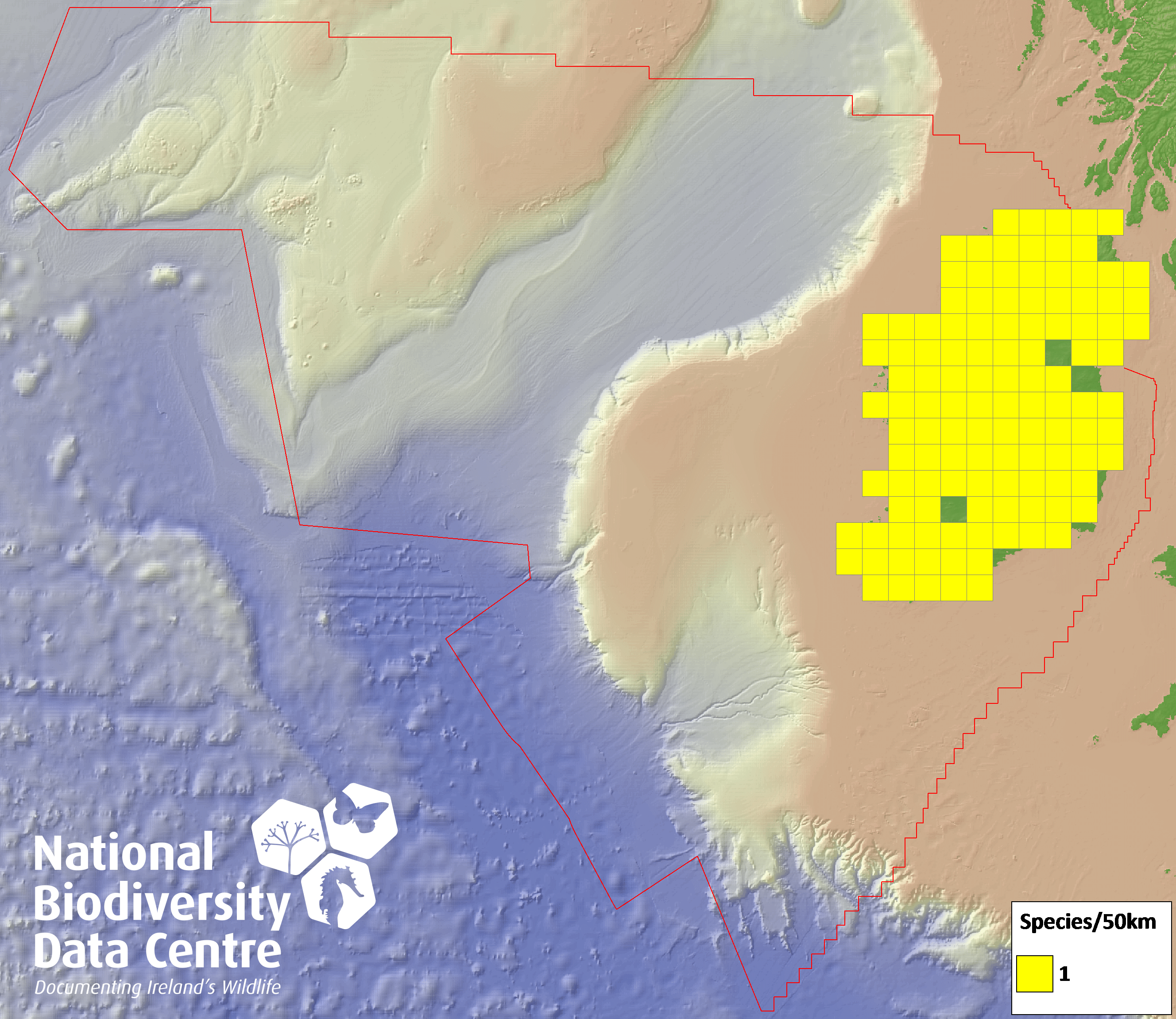 Distribution of the number of records within each 10km grid square (ITM).Marine Map - 50Km