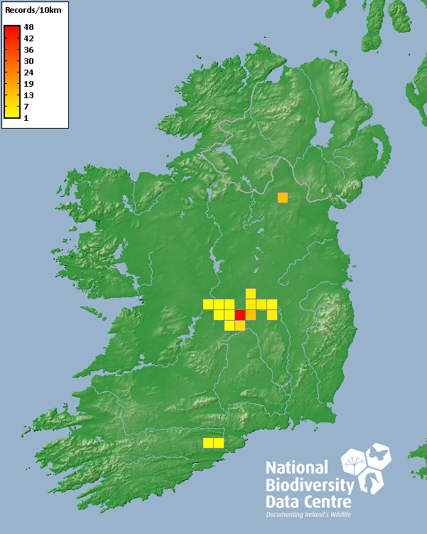 Distribution of the number of records recorded within each 10km grid square (ITM).Marine Map - 50km