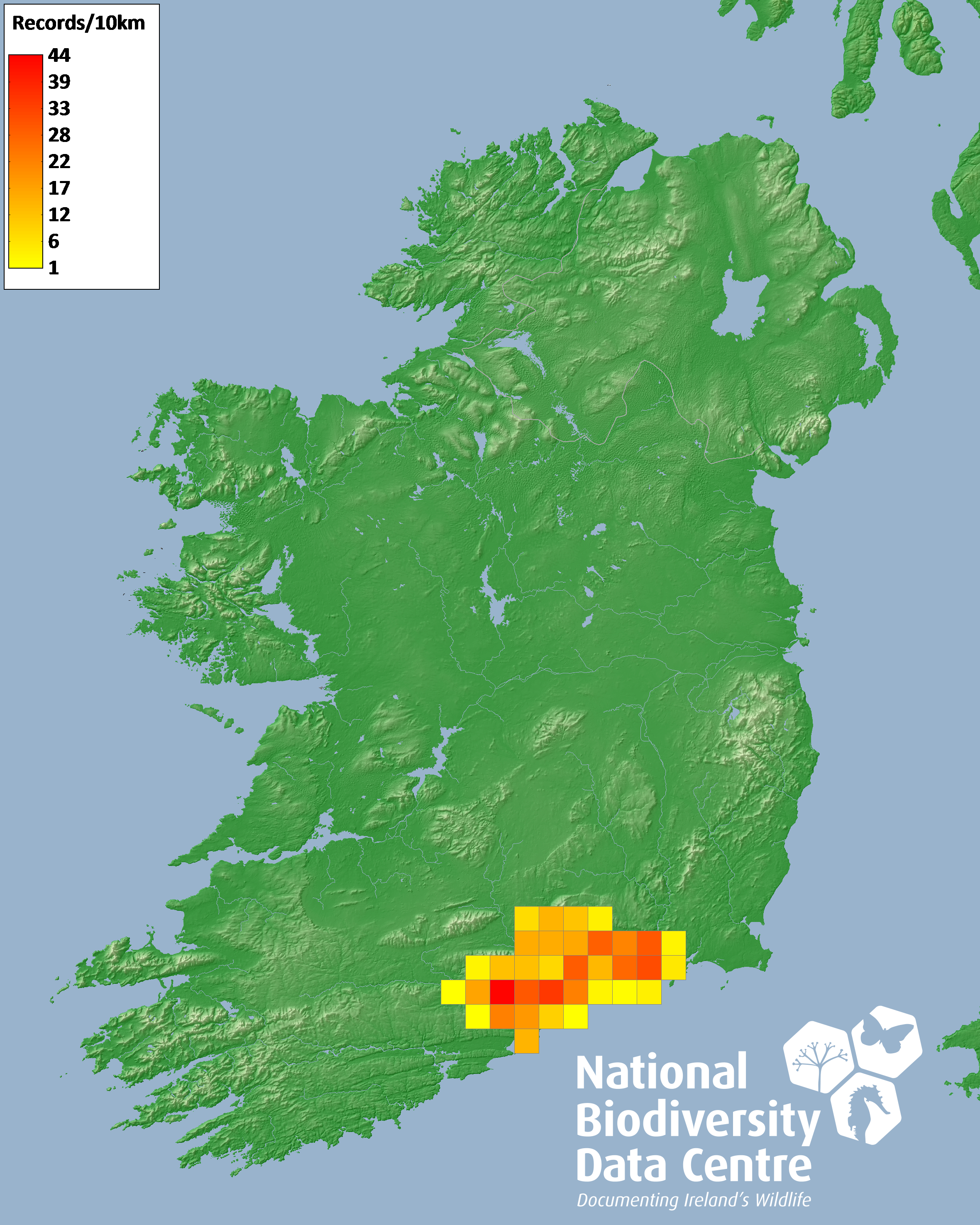 Distribution of the number of records recorded within each 10km grid square (ITM).Marine Map - 50km
