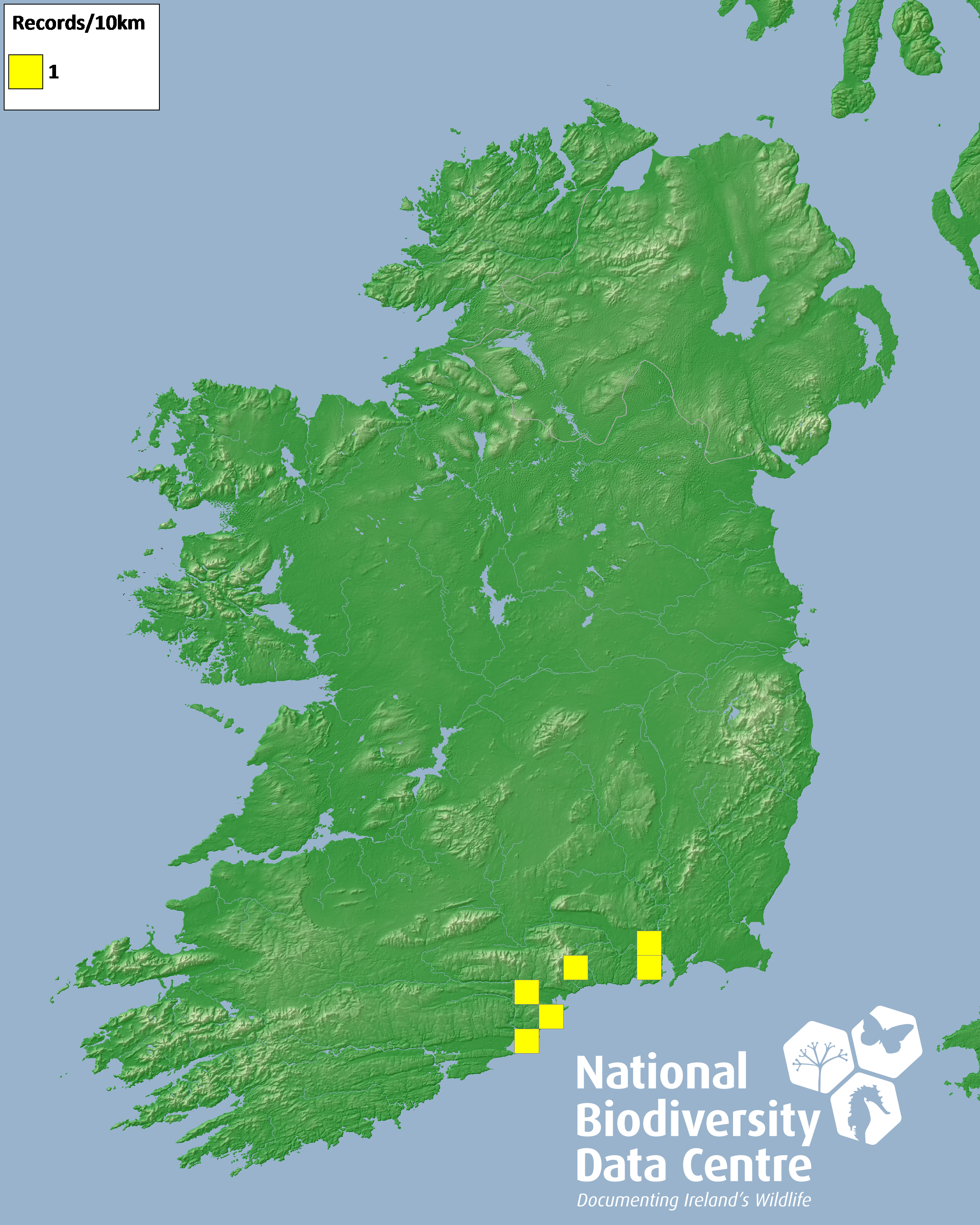 Distribution of the number of records recorded within each 10km grid square (ITM).Marine Map - 50km