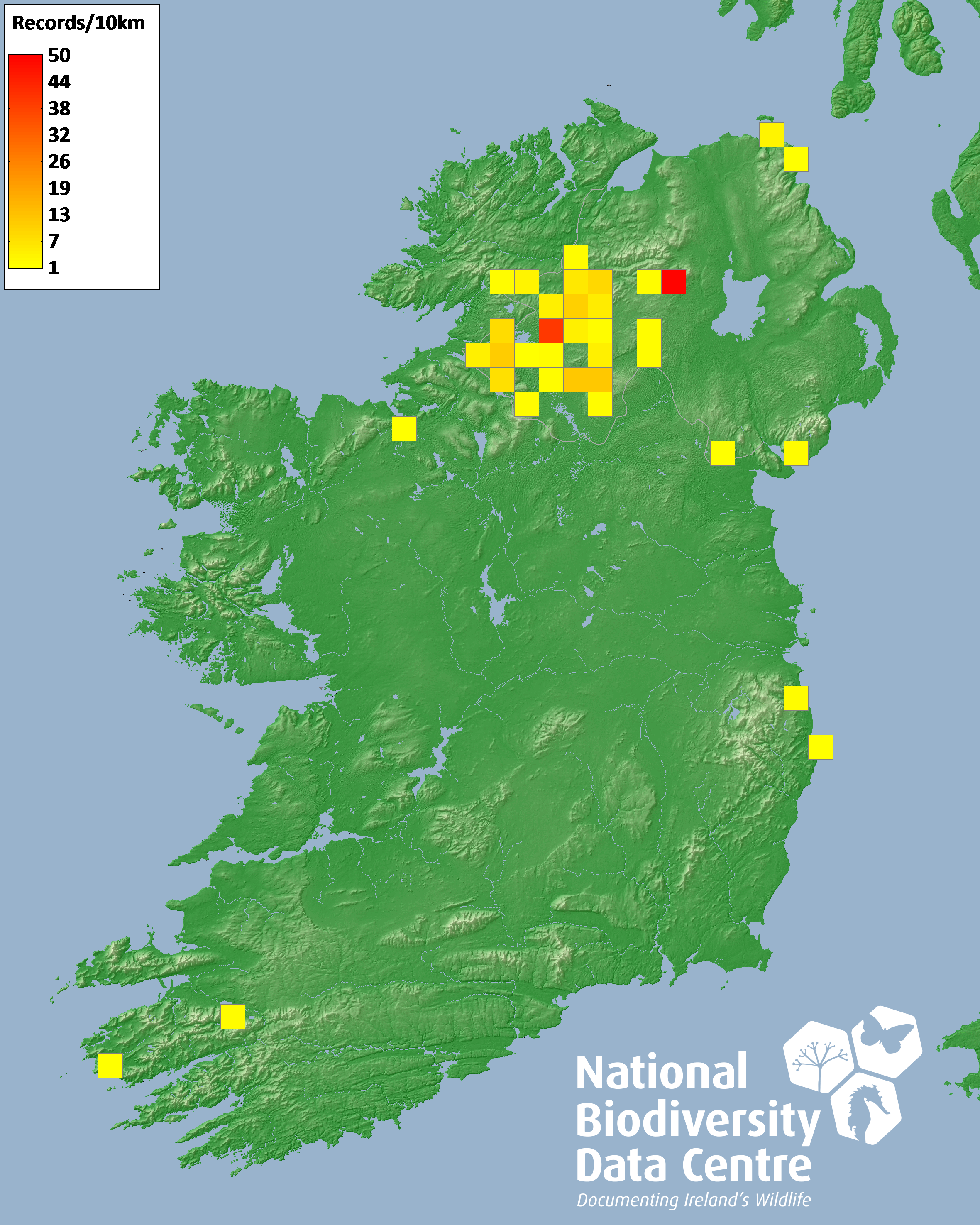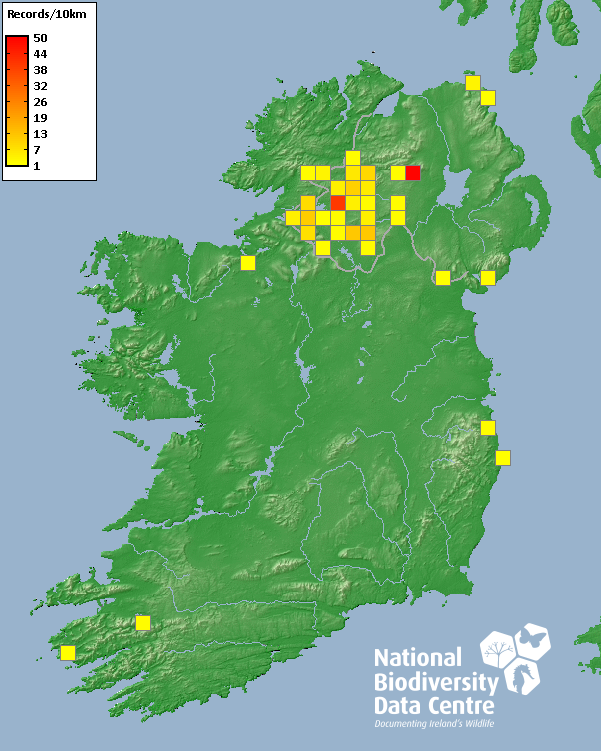 Distribution of the number of records recorded within each 10km grid square (ITM).Marine Map - 50km