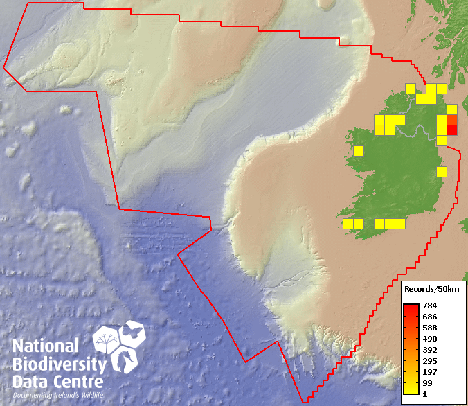 Distribution of the number of records recorded within each 10km grid square (ITM).Marine Map - 50km