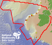 Distribution of the number of records recorded within each 10km grid square (ITM).Marine Map - 50km