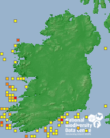 Distribution of the number of records recorded within each 10km grid square (ITM).Marine Map - 50km