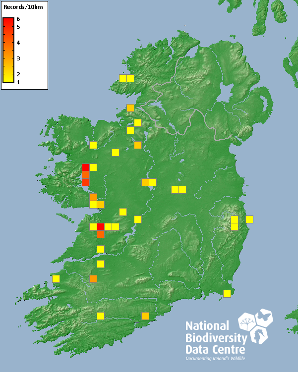 Distribution of the number of records recorded within each 10km grid square (ITM).Marine Map - 50km