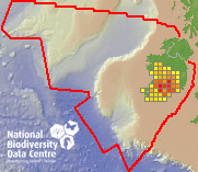 Distribution of the number of records recorded within each 10km grid square (ITM).Marine Map - 50km
