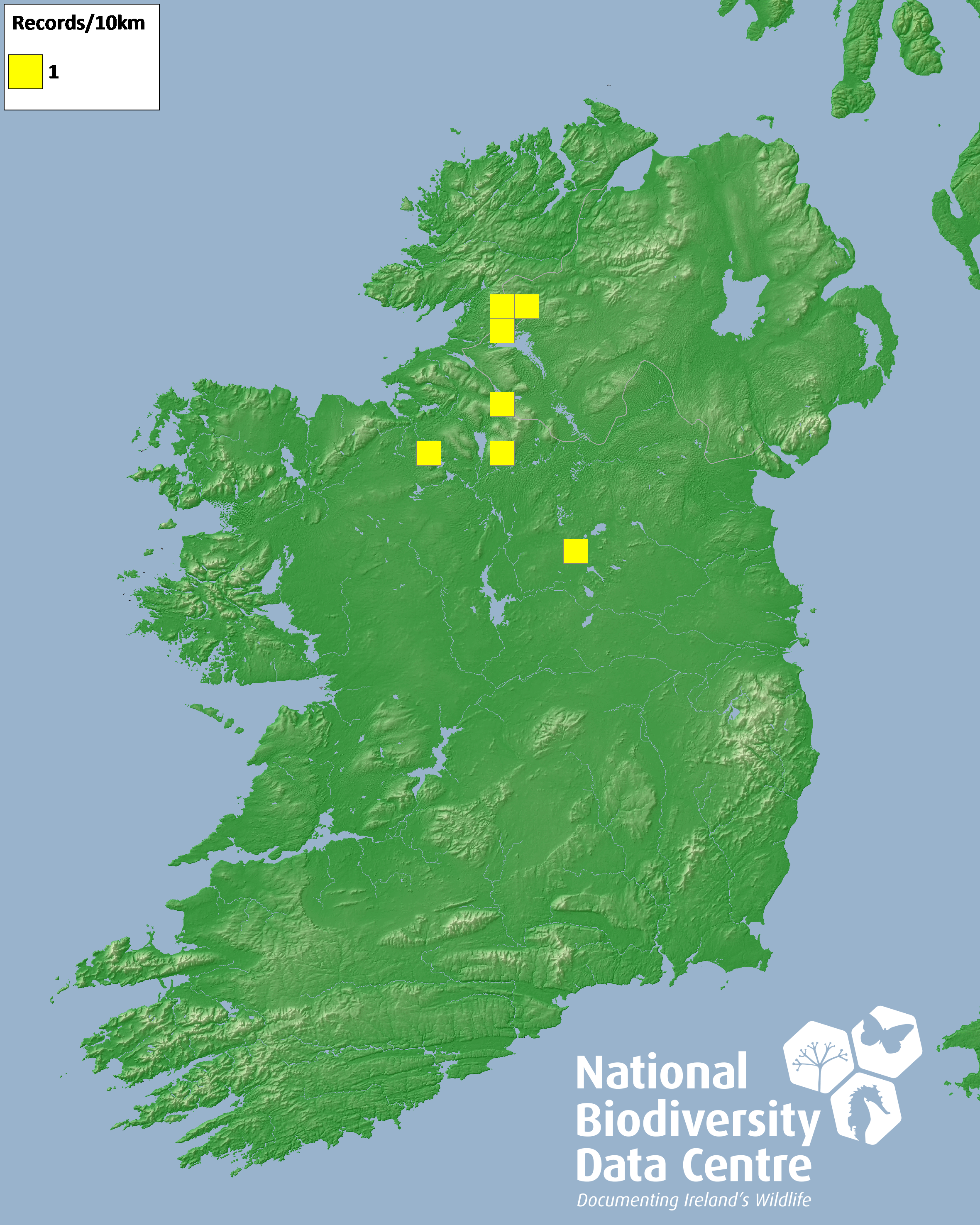 Distribution of the number of records recorded within each 10km grid square (ITM).Marine Map - 50km