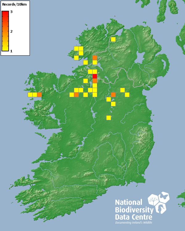 Distribution of the number of records recorded within each 10km grid square (ITM).Marine Map - 50km