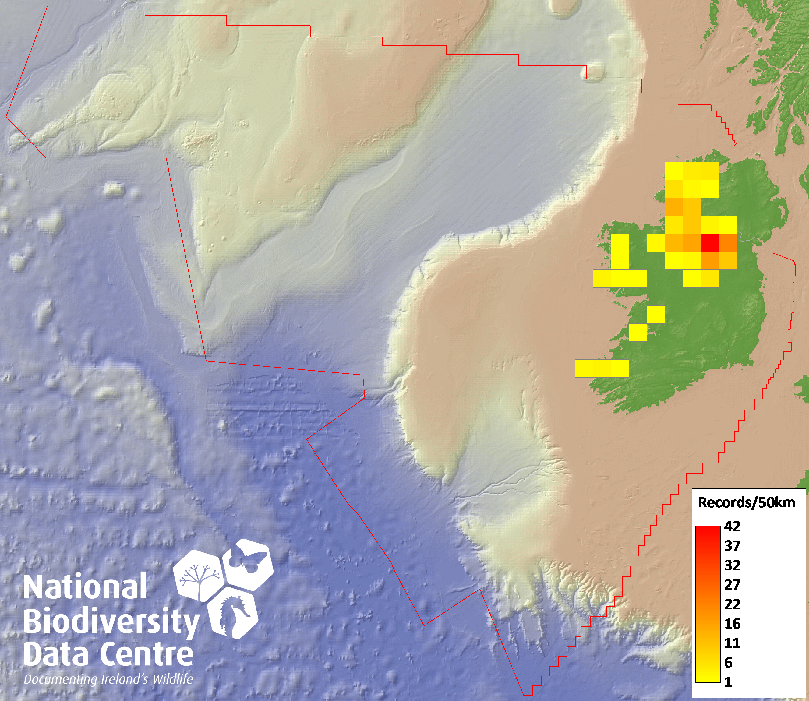 Distribution of the number of records recorded within each 10km grid square (ITM).Marine Map - 50km