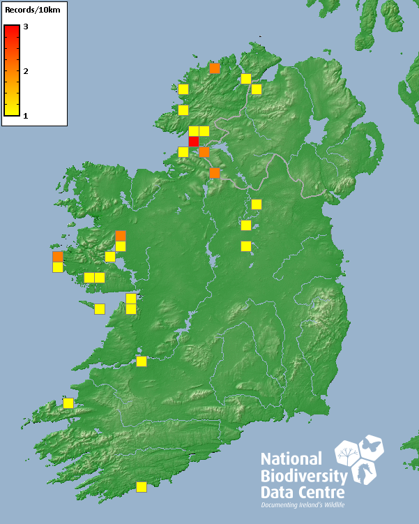 Distribution of the number of records recorded within each 10km grid square (ITM).Marine Map - 50km