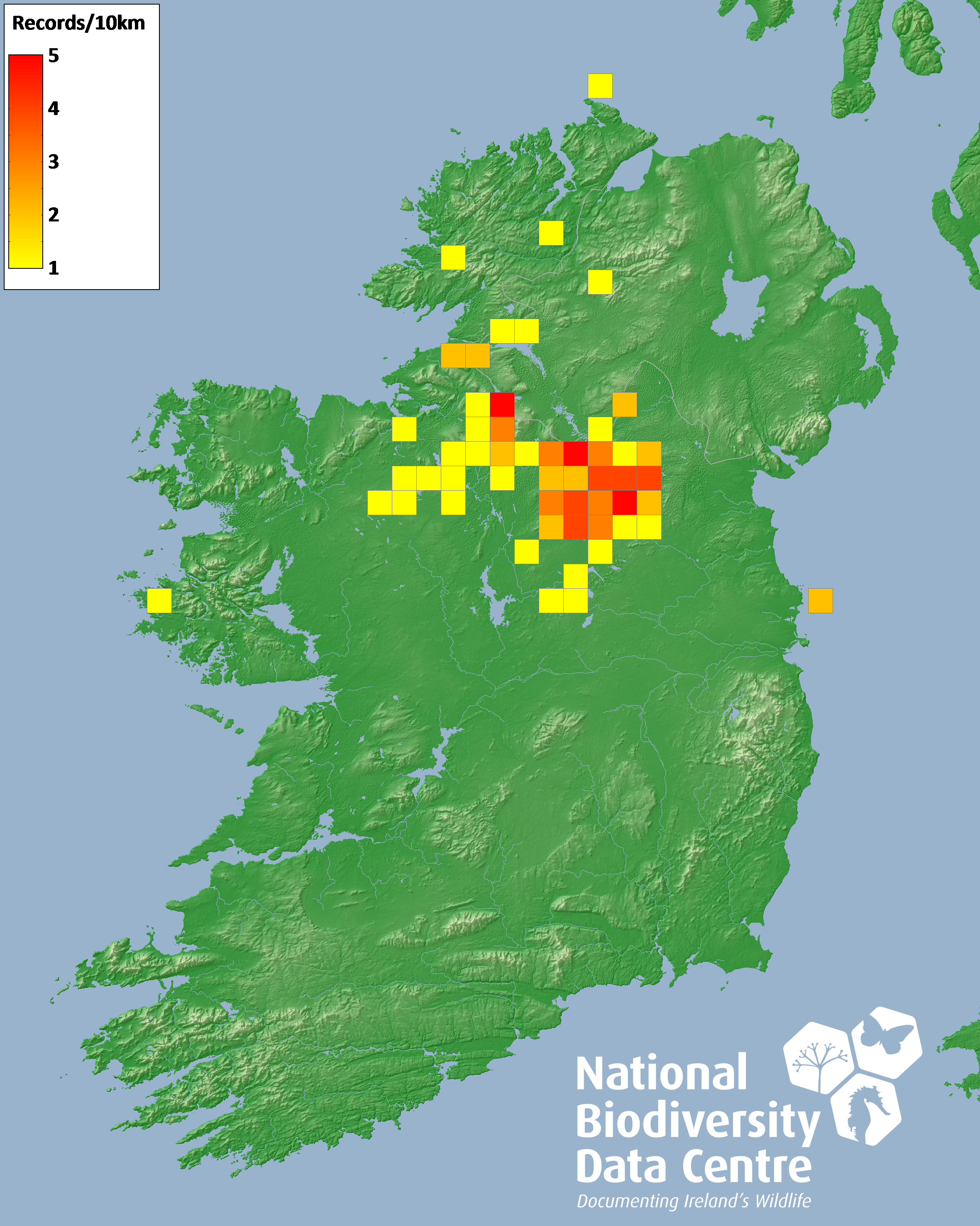 Distribution of the number of records recorded within each 10km grid square (ITM).Marine Map - 50km