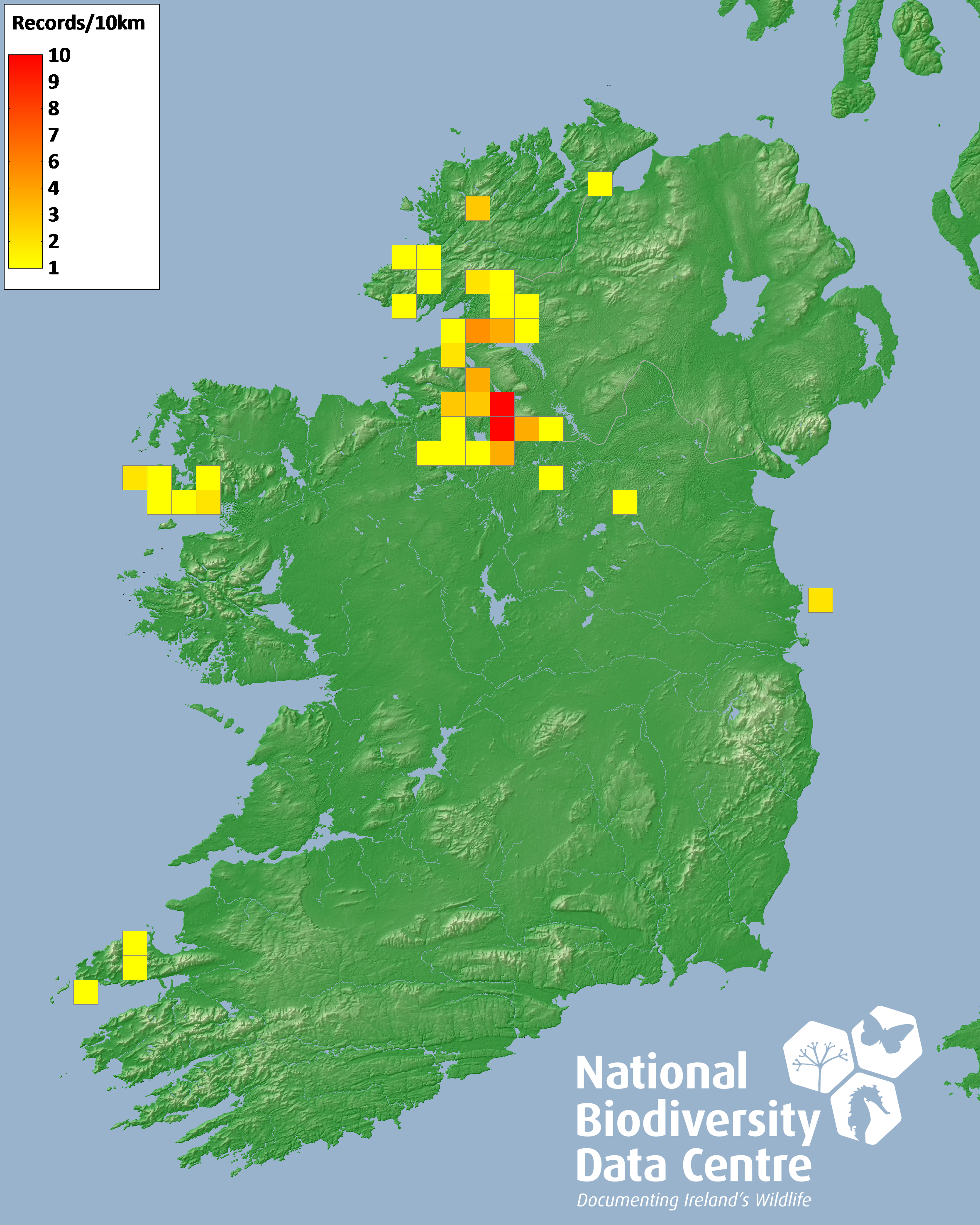 Distribution of the number of records recorded within each 10km grid square (ITM).Marine Map - 50km