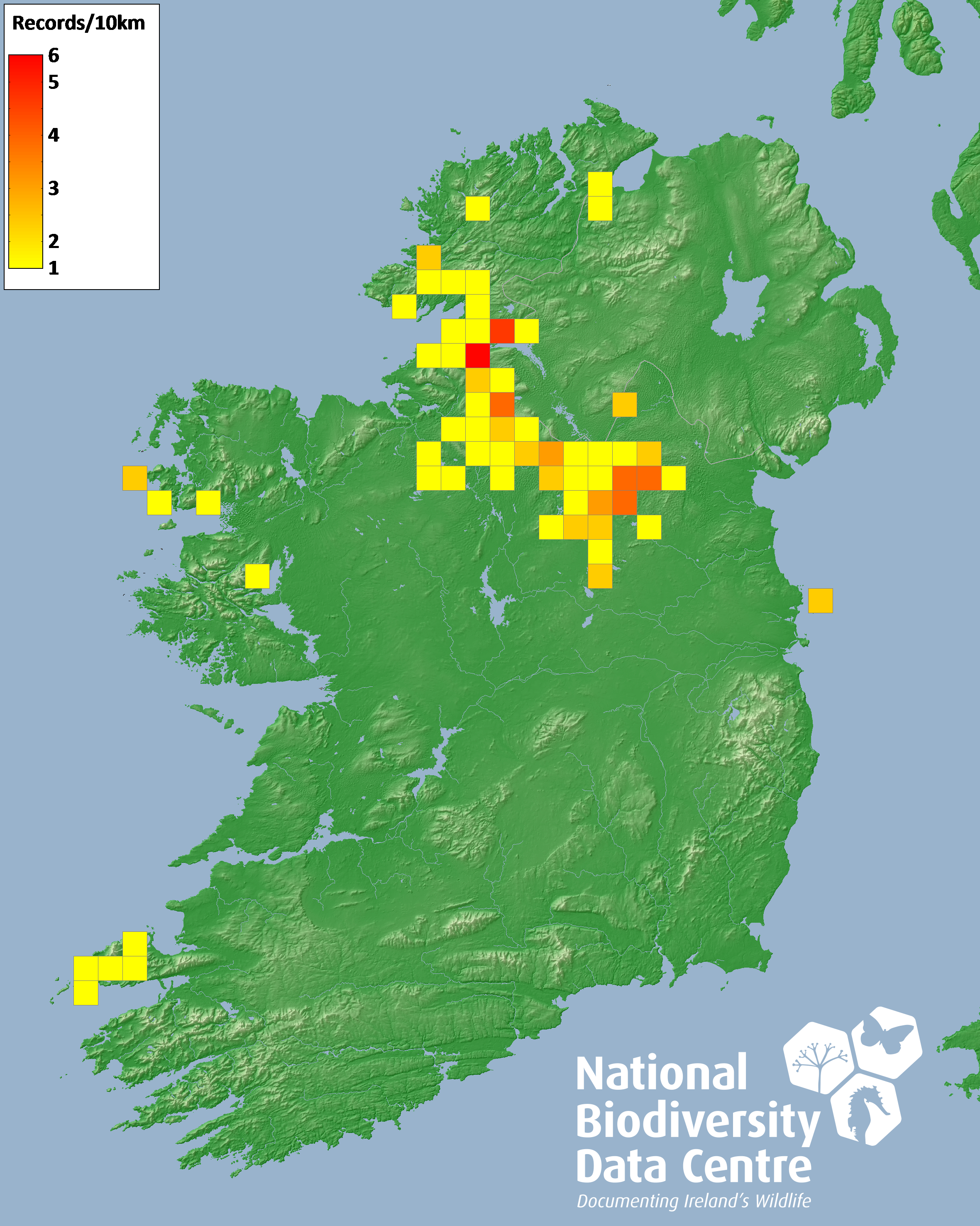 Distribution of the number of records recorded within each 10km grid square (ITM).Marine Map - 50km