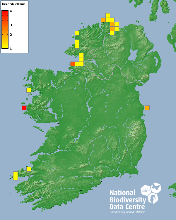 Distribution of the number of records recorded within each 10km grid square (ITM).Marine Map - 50km