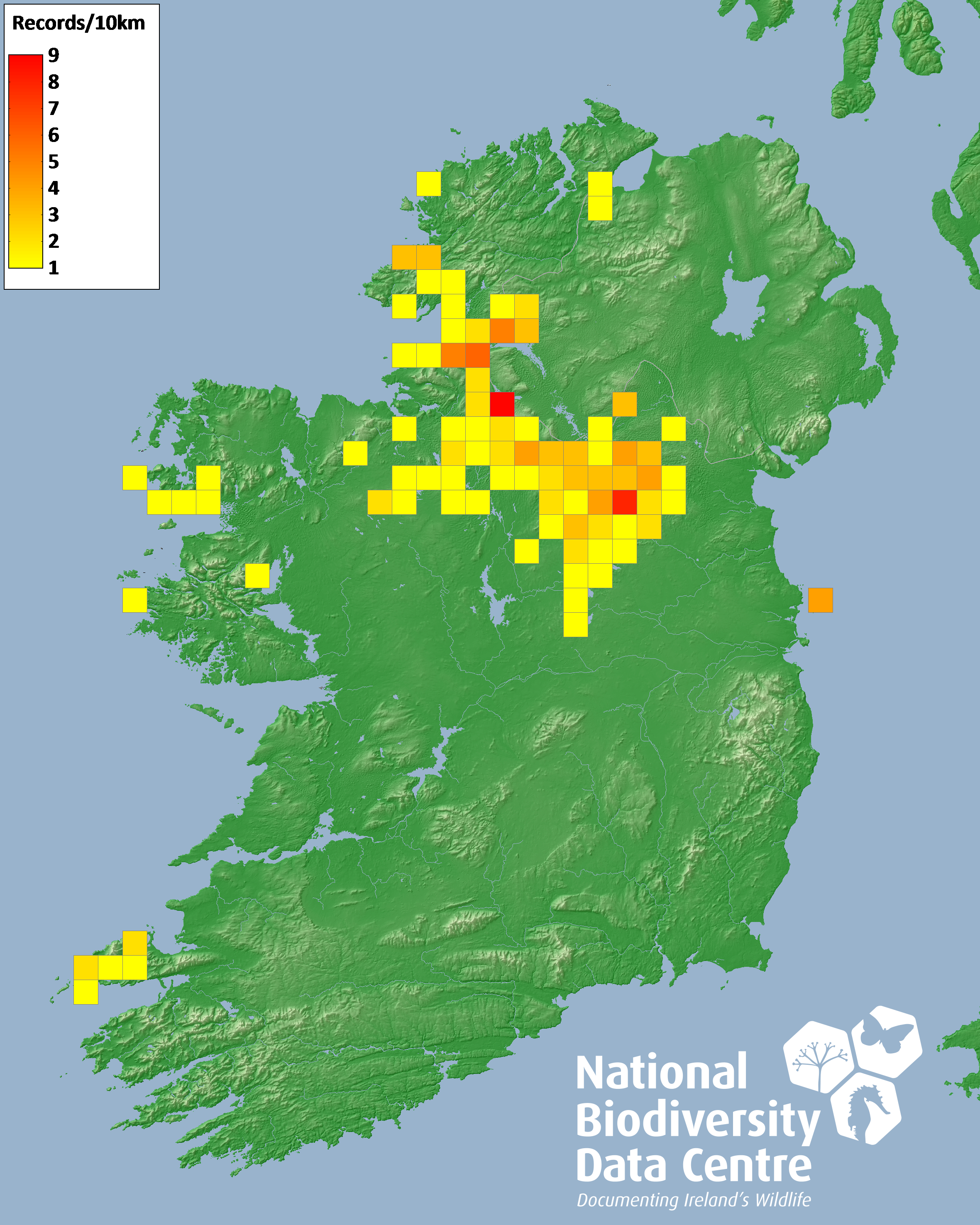 Distribution of the number of records recorded within each 10km grid square (ITM).Marine Map - 50km