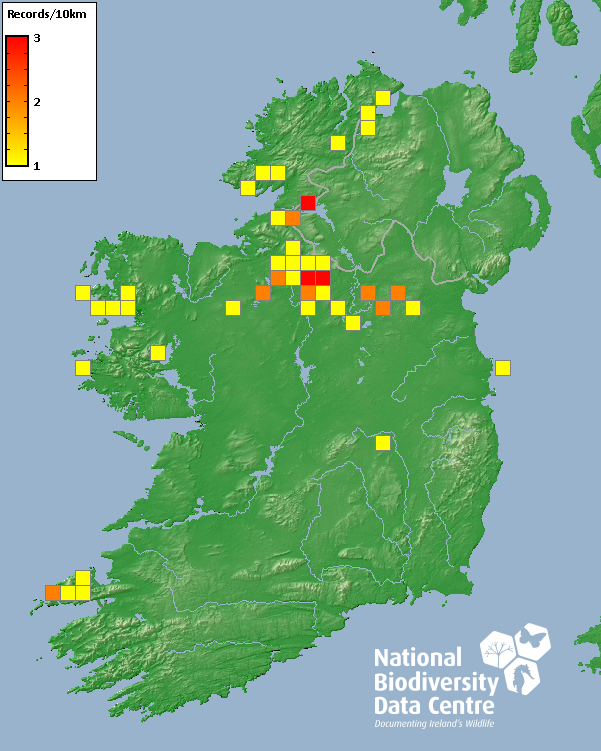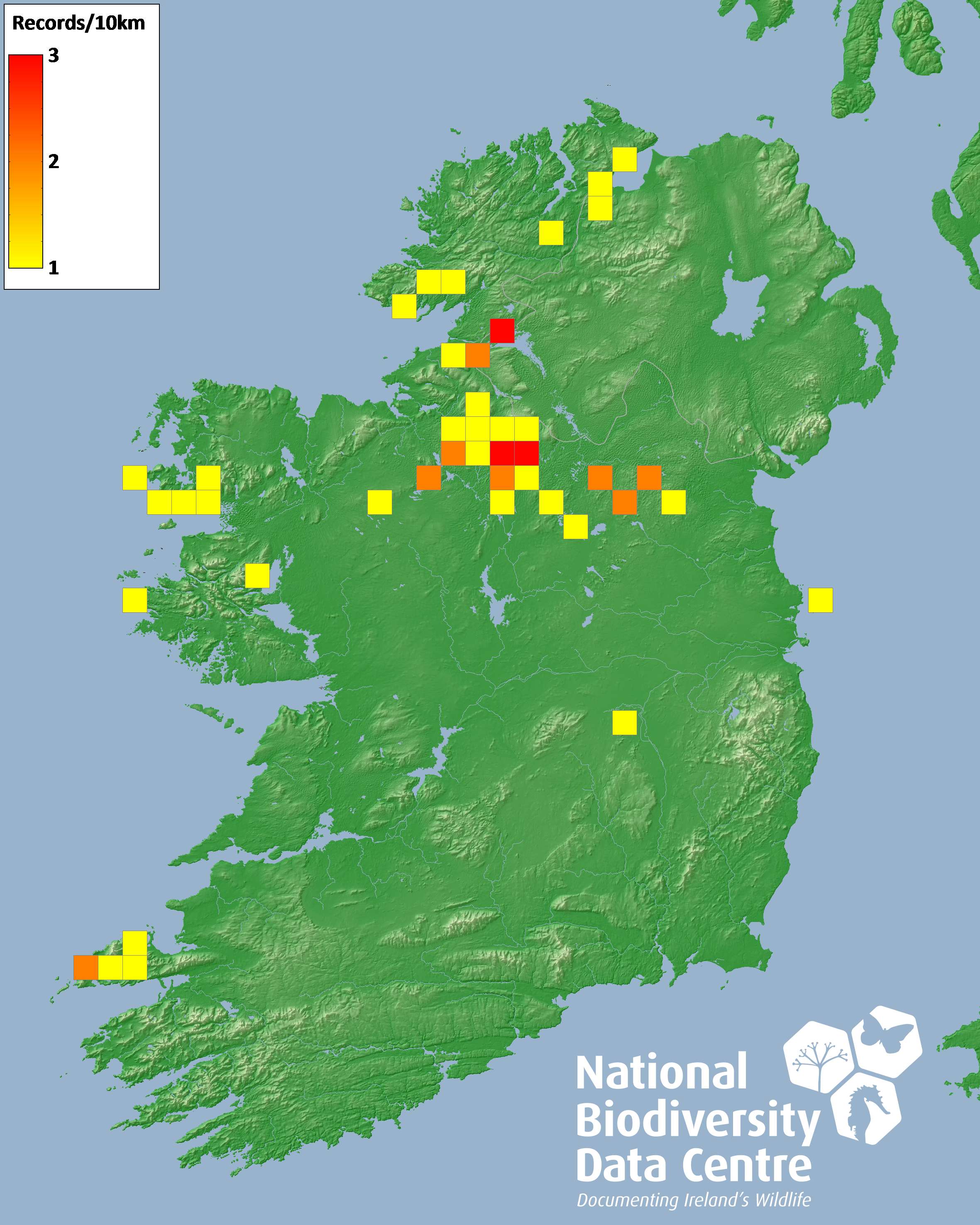 Distribution of the number of records recorded within each 10km grid square (ITM).Marine Map - 50km