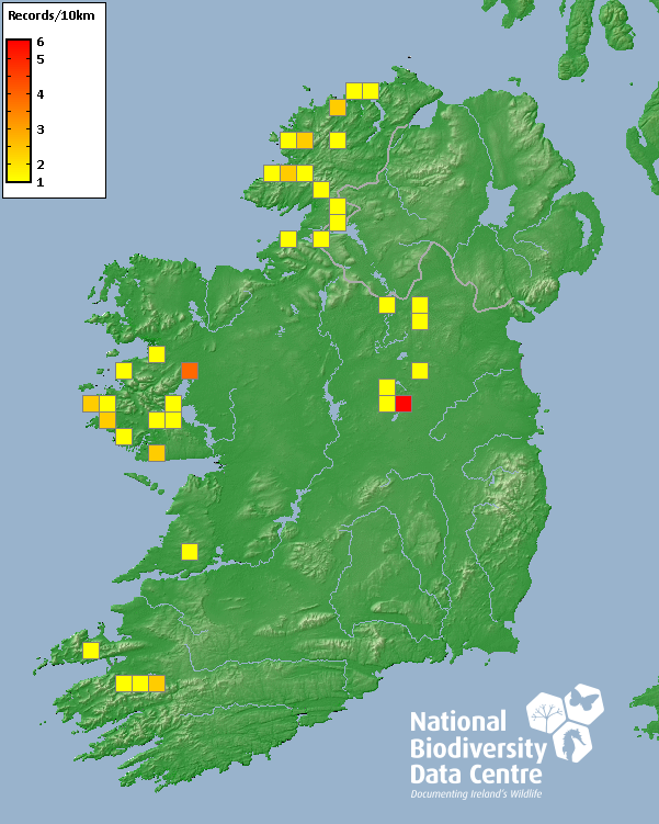 Distribution of the number of records recorded within each 10km grid square (ITM).Marine Map - 50km