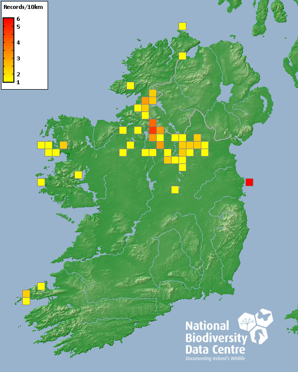 Distribution of the number of records recorded within each 10km grid square (ITM).Marine Map - 50km