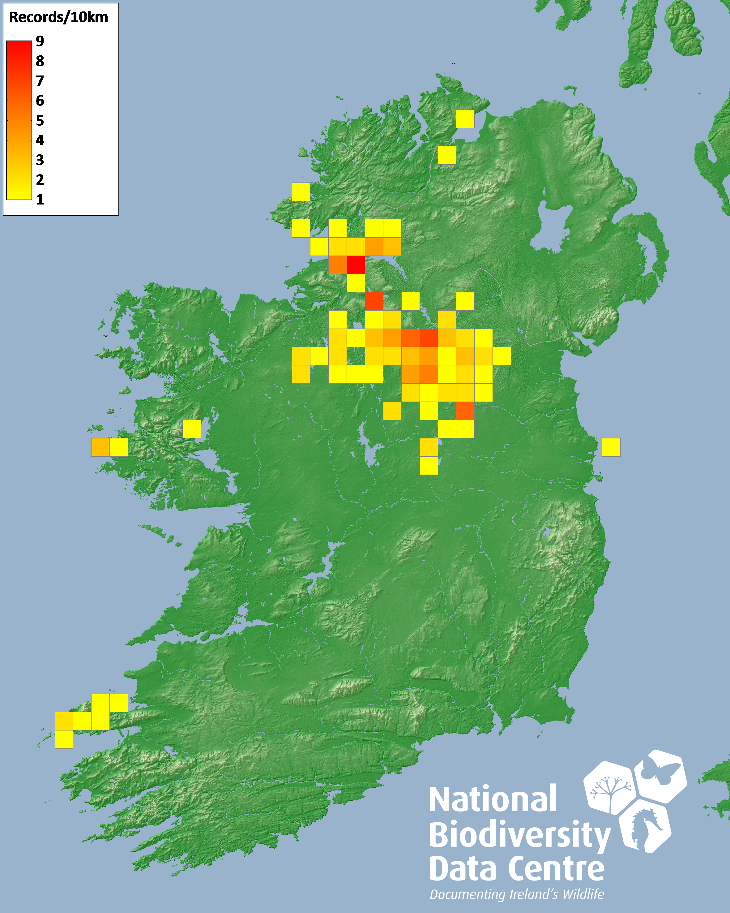 Distribution of the number of records recorded within each 10km grid square (ITM).Marine Map - 50km