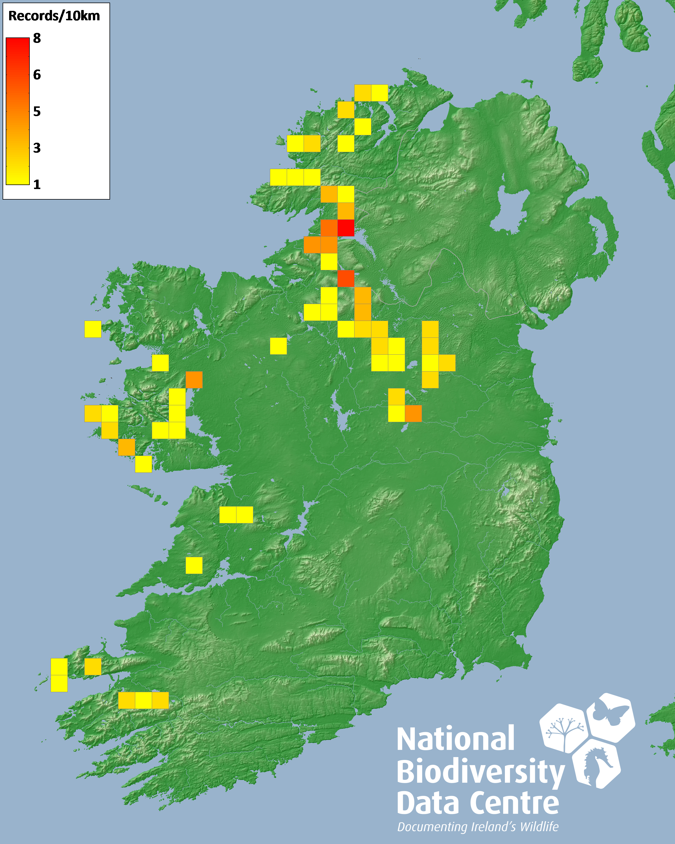 Distribution of the number of records recorded within each 10km grid square (ITM).Marine Map - 50km