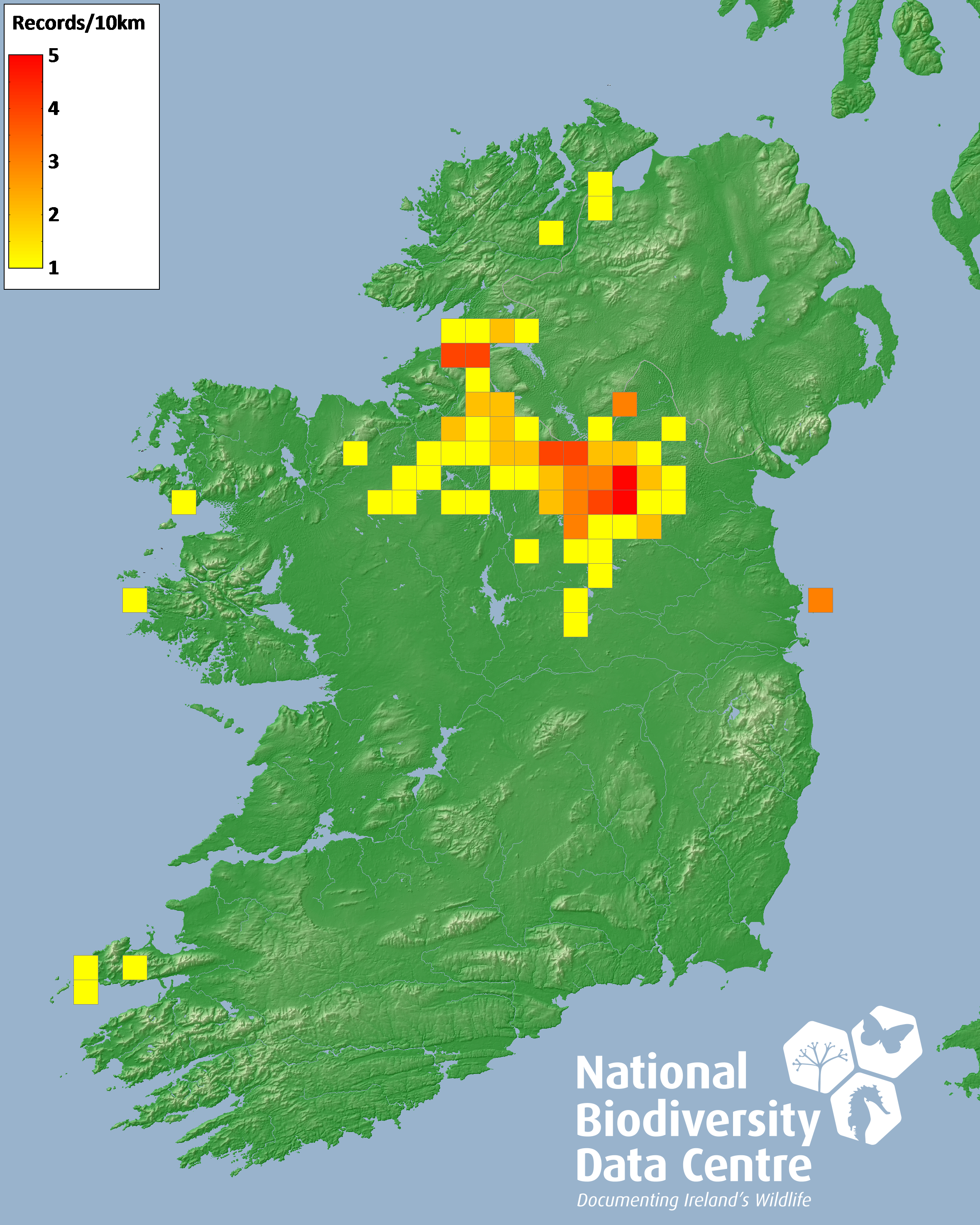 Distribution of the number of records recorded within each 10km grid square (ITM).Marine Map - 50km