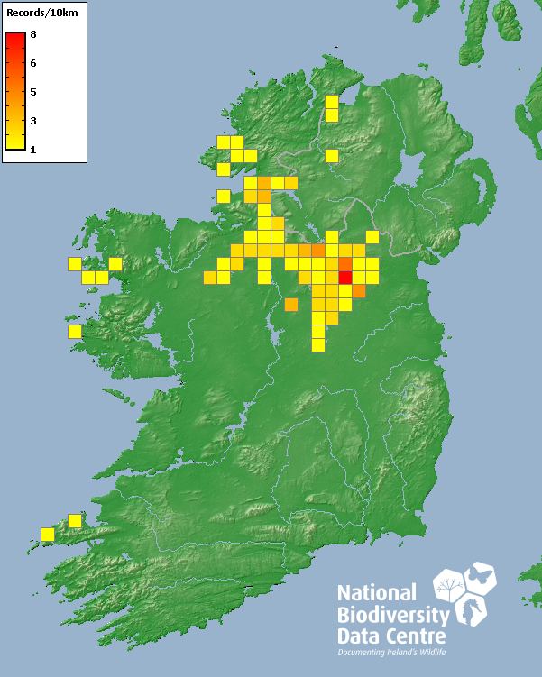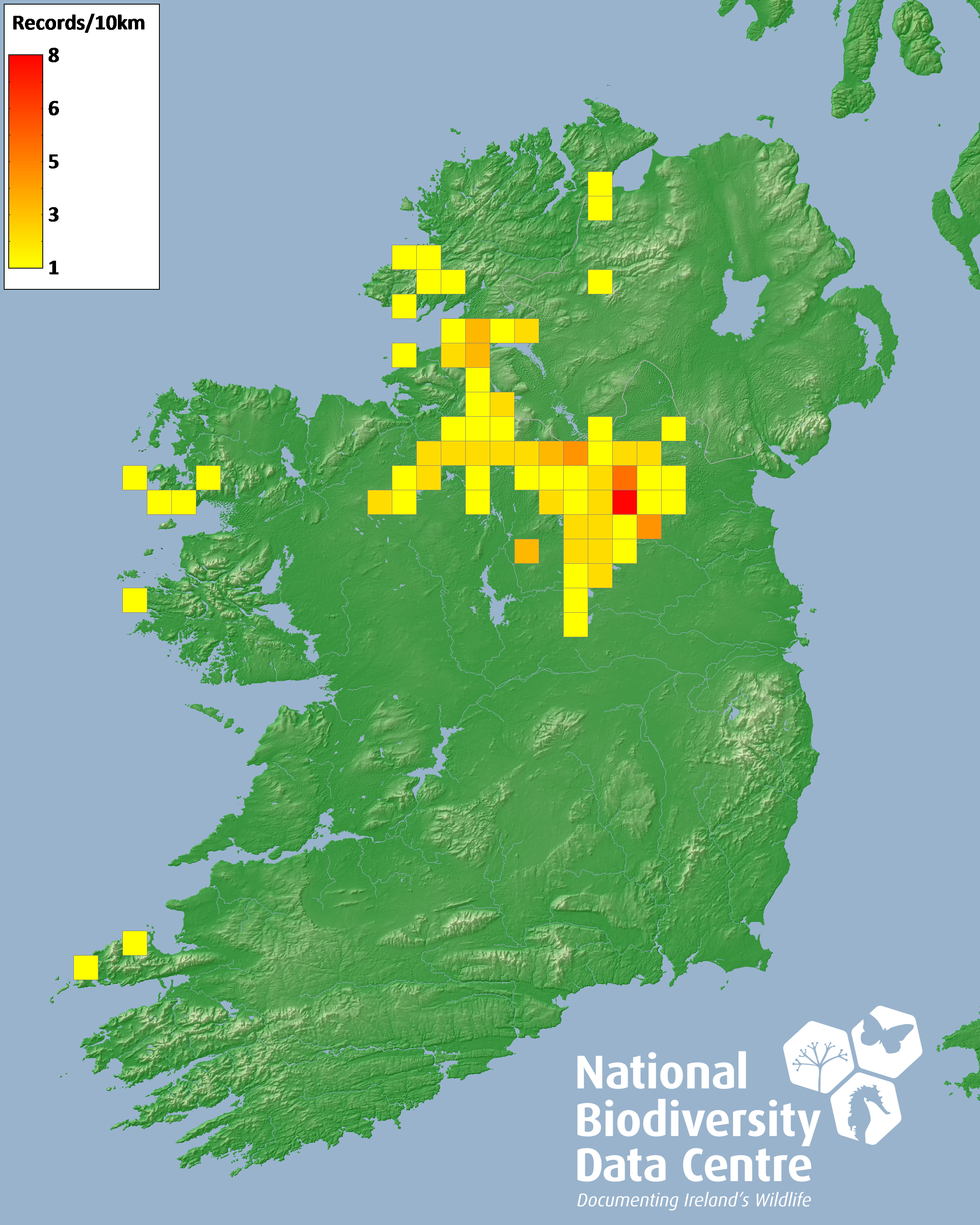 Distribution of the number of records recorded within each 10km grid square (ITM).Marine Map - 50km