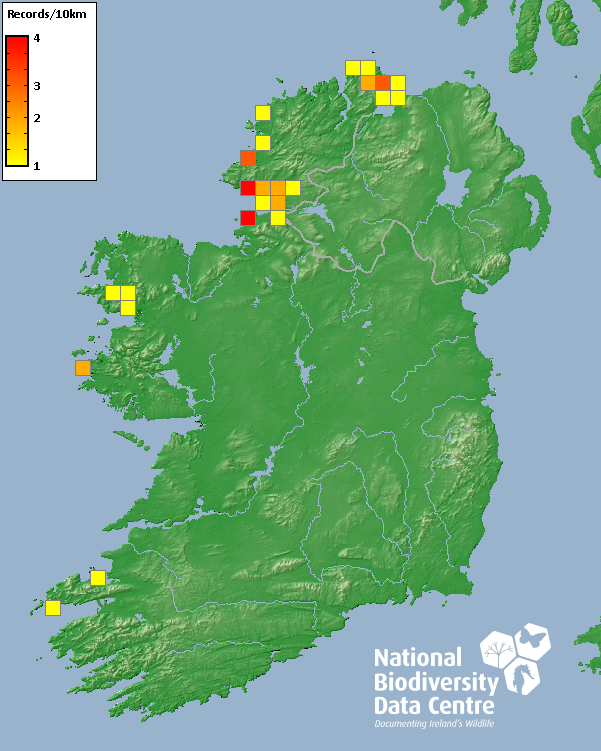 Distribution of the number of records recorded within each 10km grid square (ITM).Marine Map - 50km