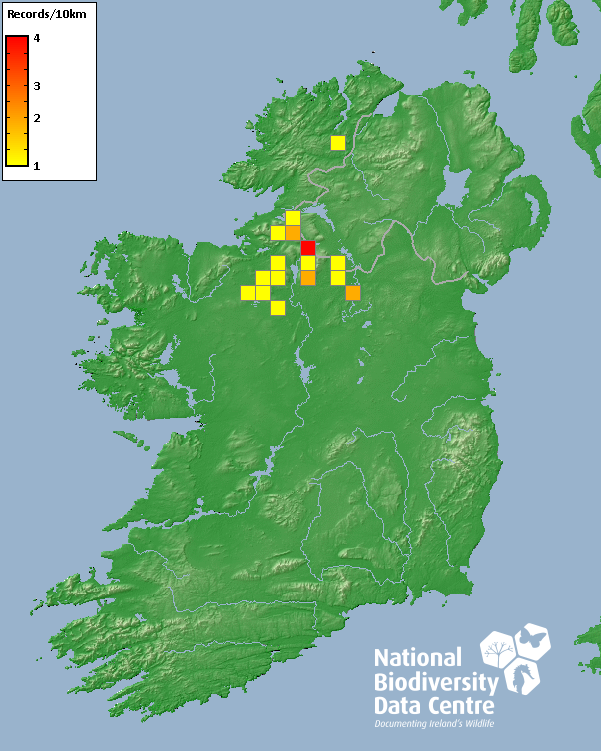 Distribution of the number of records recorded within each 10km grid square (ITM).Marine Map - 50km