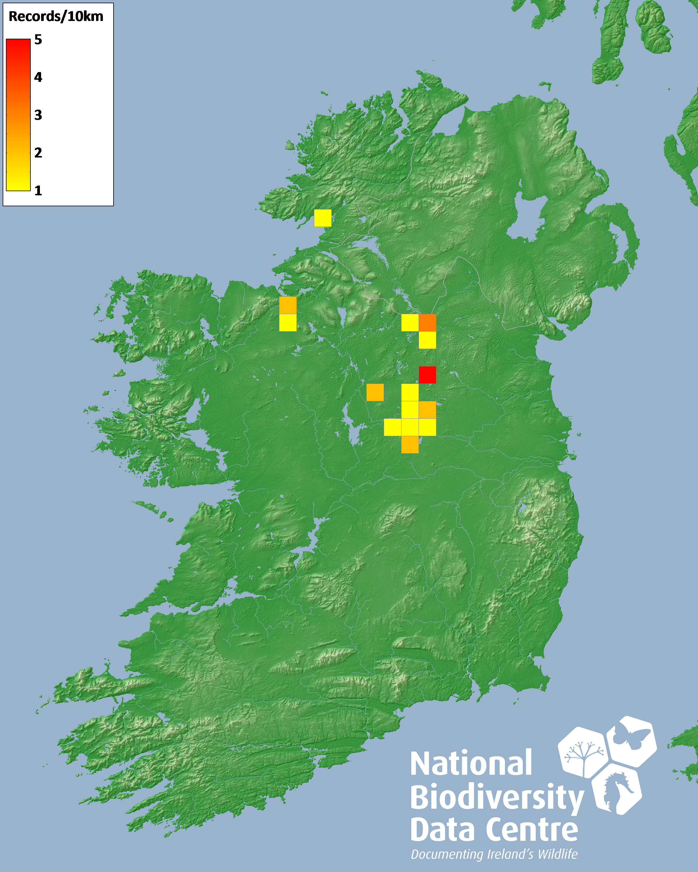 Distribution of the number of records recorded within each 10km grid square (ITM).Marine Map - 50km