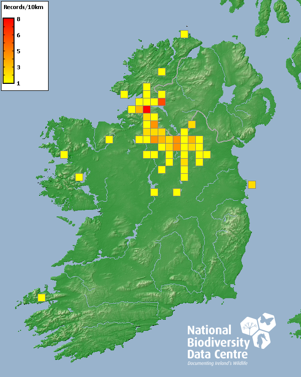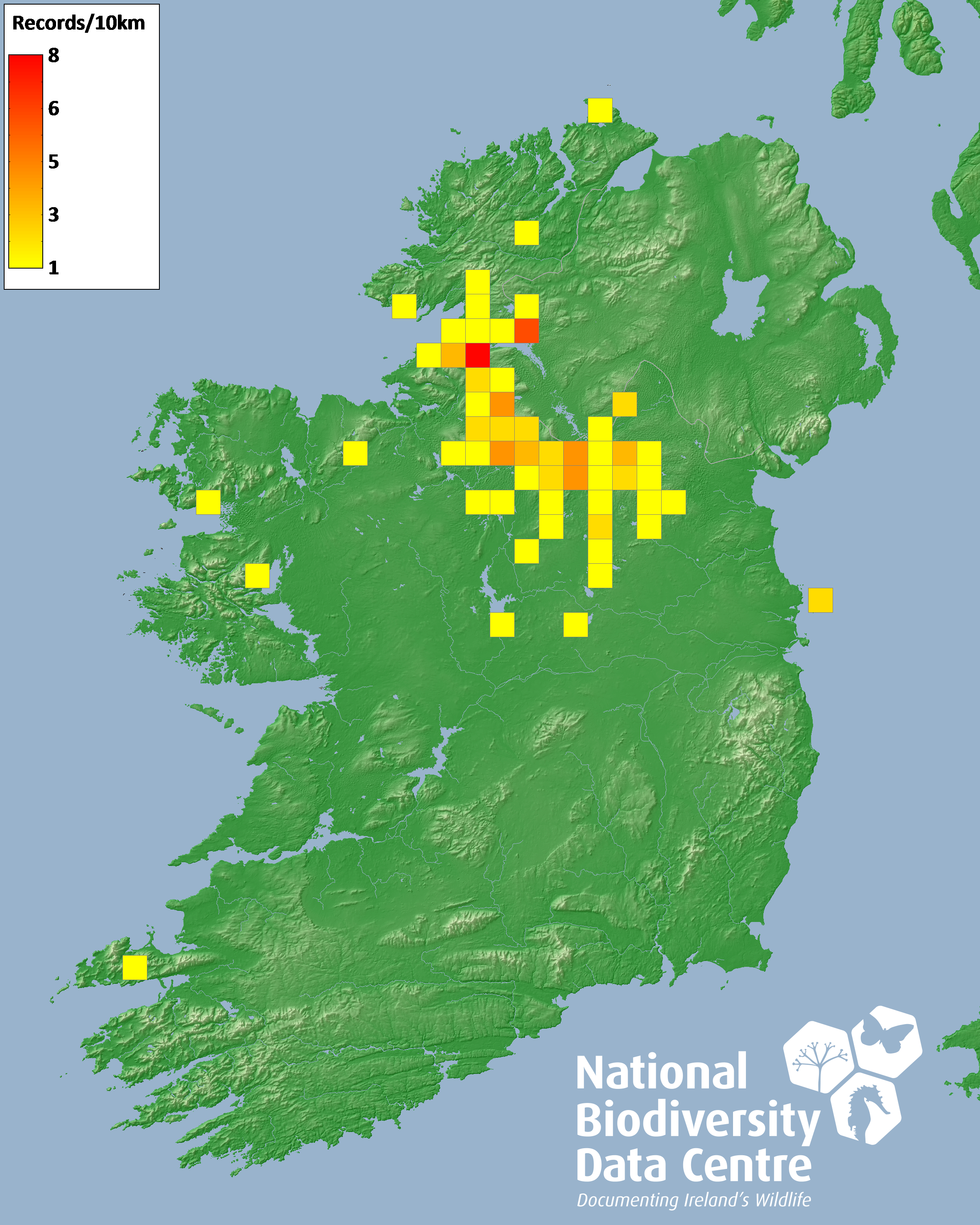 Distribution of the number of records recorded within each 10km grid square (ITM).Marine Map - 50km