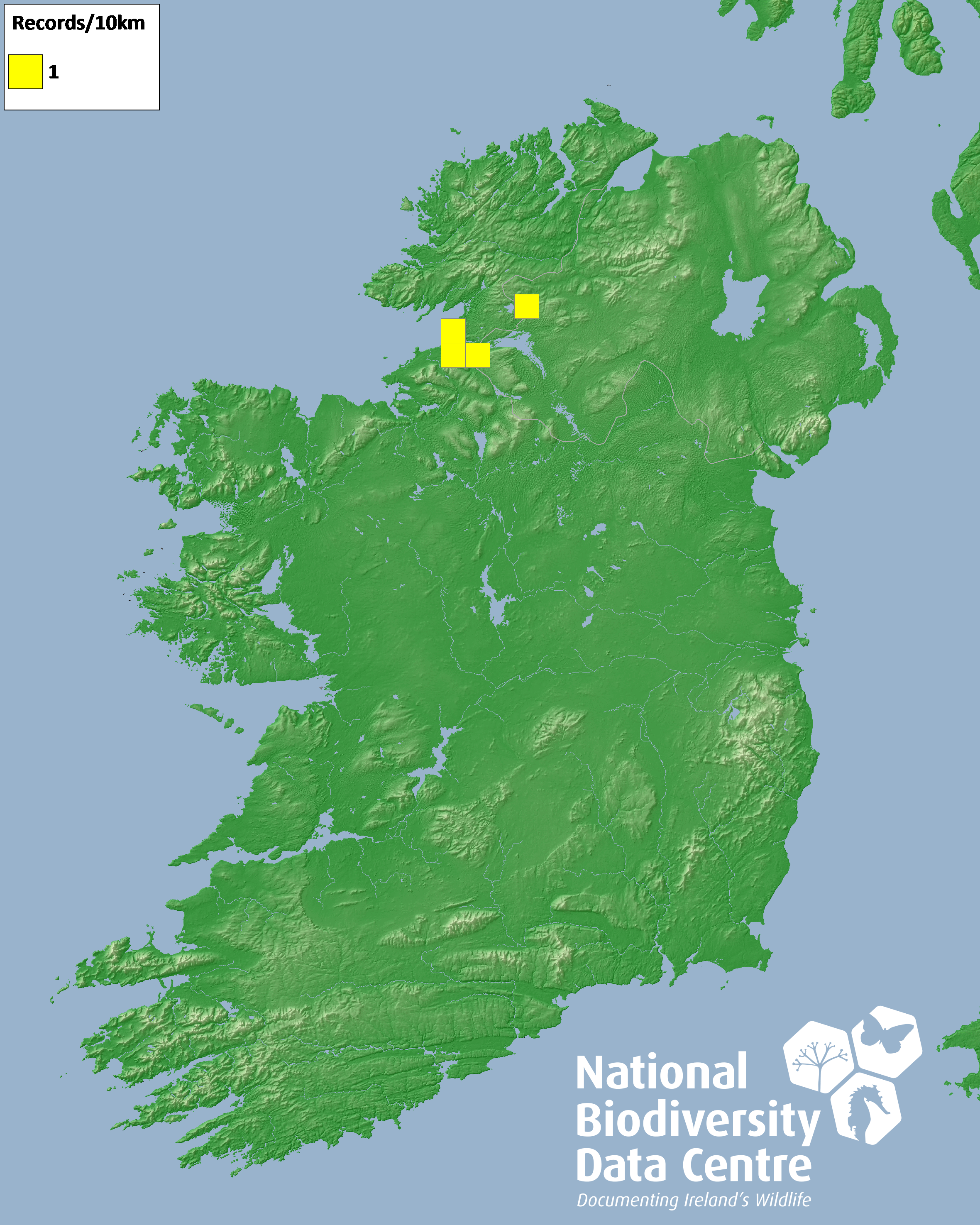 Distribution of the number of records recorded within each 10km grid square (ITM).Marine Map - 50km