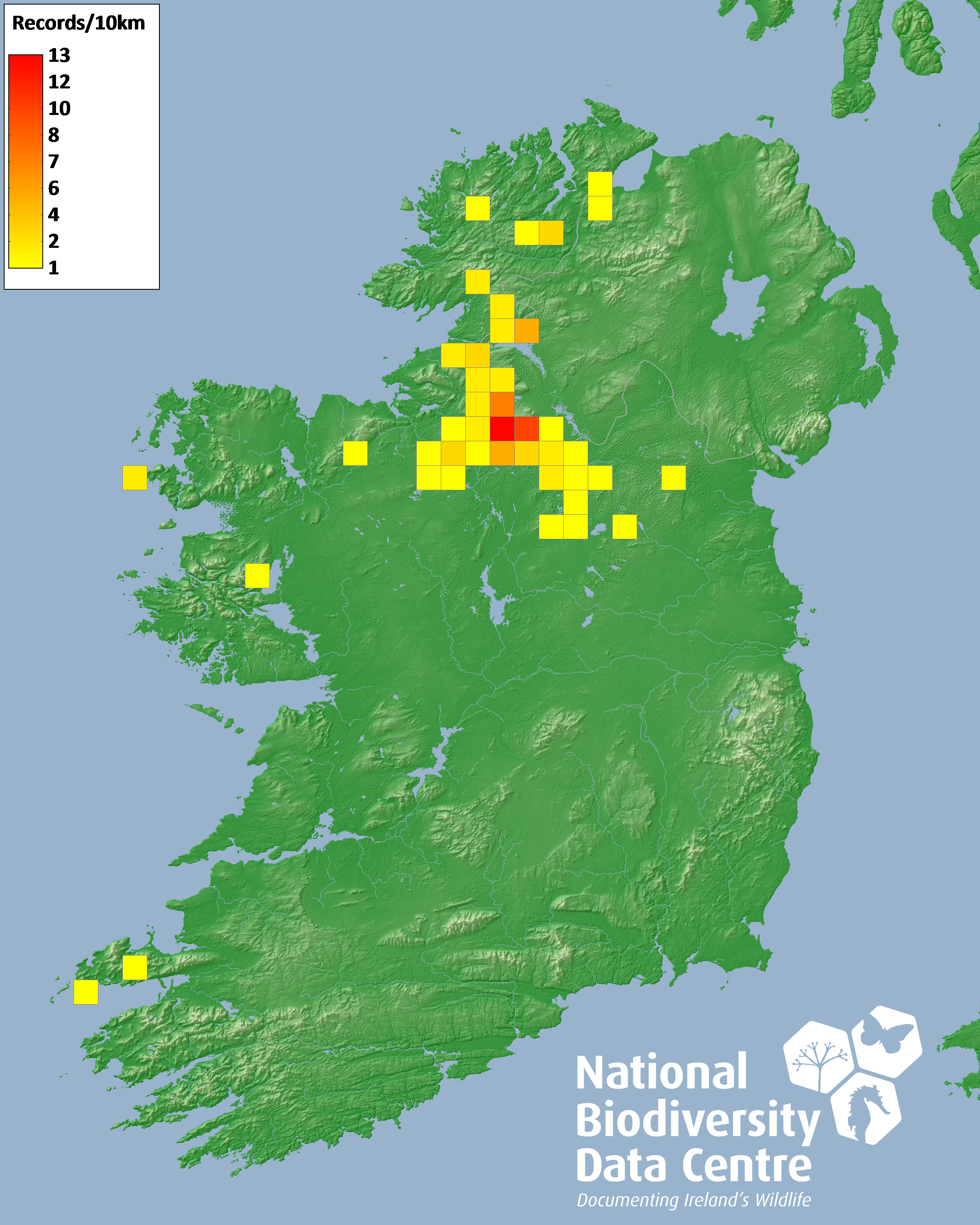 Distribution of the number of records recorded within each 10km grid square (ITM).Marine Map - 50km