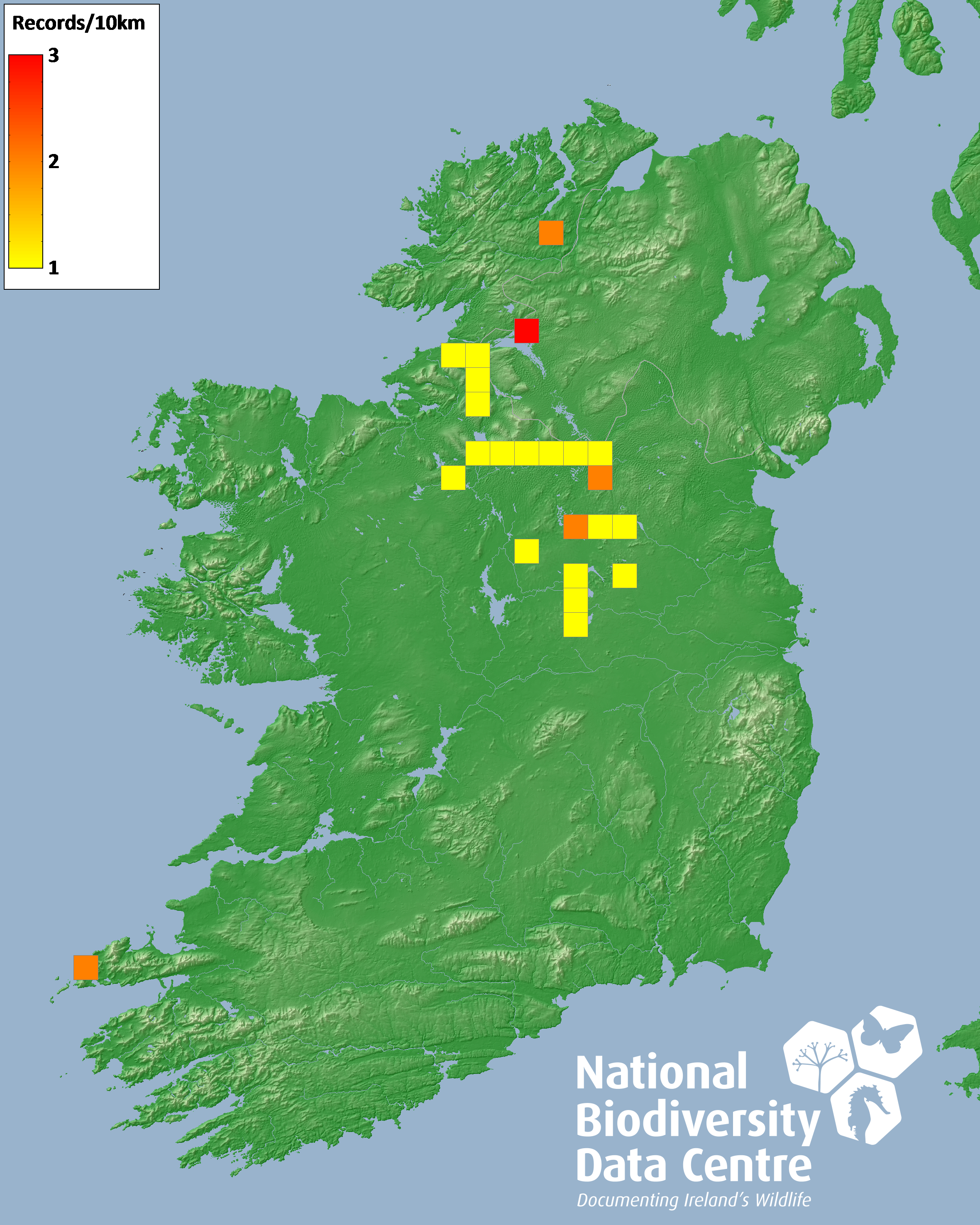 Distribution of the number of records recorded within each 10km grid square (ITM).Marine Map - 50km