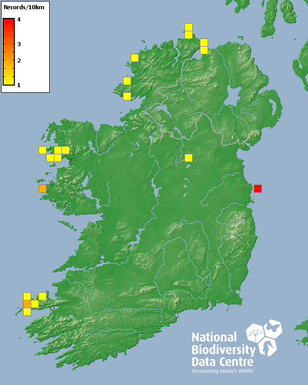 Distribution of the number of records recorded within each 10km grid square (ITM).Marine Map - 50km