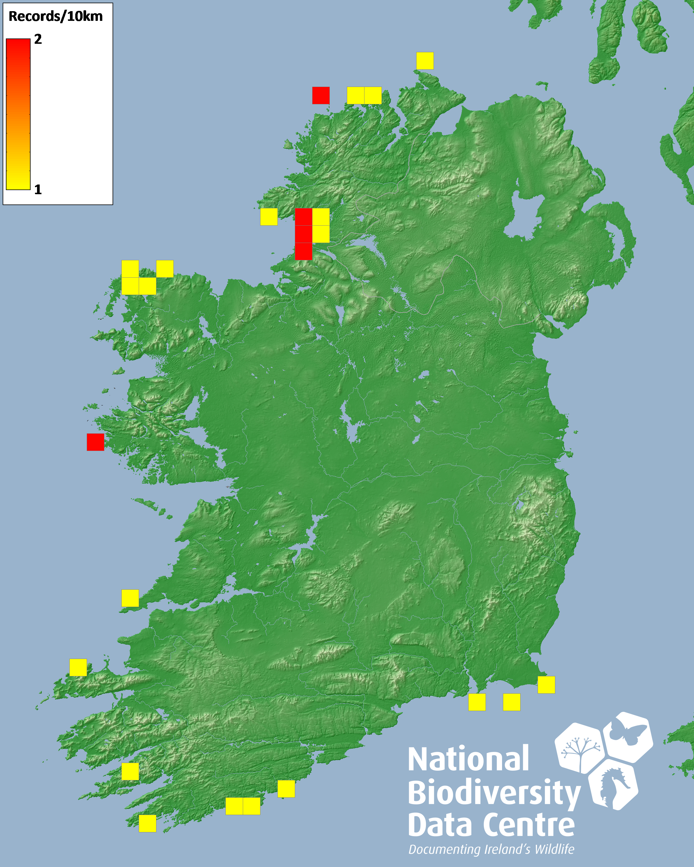 Distribution of the number of records recorded within each 10km grid square (ITM).Marine Map - 50km