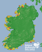 Distribution of the number of records recorded within each 10km grid square (ITM).Marine Map - 50km